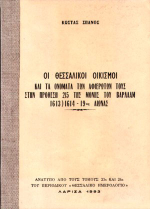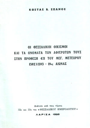 τόμους 23ο και 24ο του Θεσσαλικού Ημερολογίου, Λάρισα 1993. |