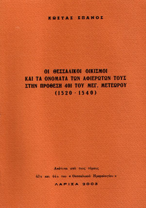 επώνυμα των Θεσσαλών, από τον 16ο αιώνα και εξής, και ιστορικά στοιχεία για